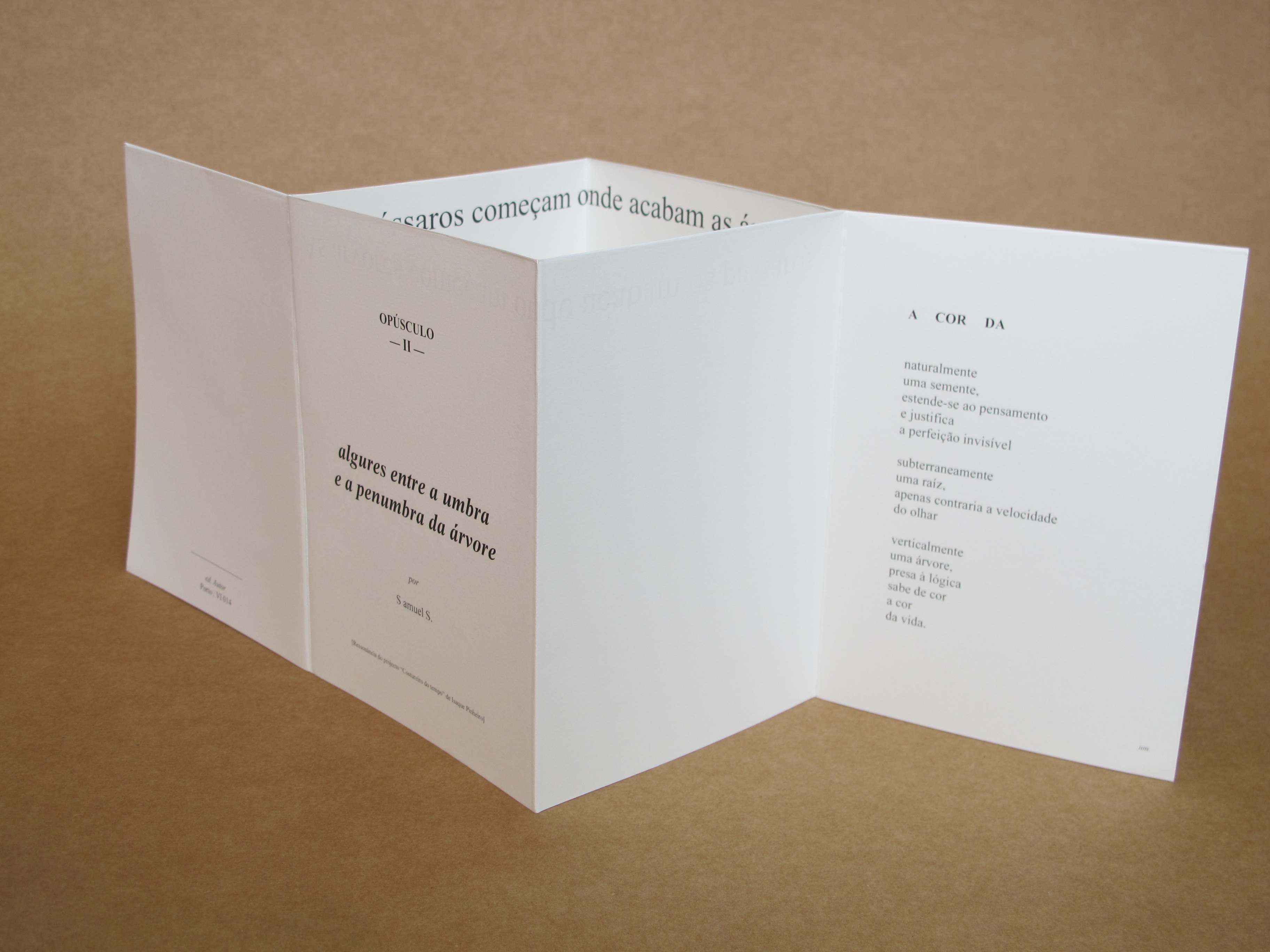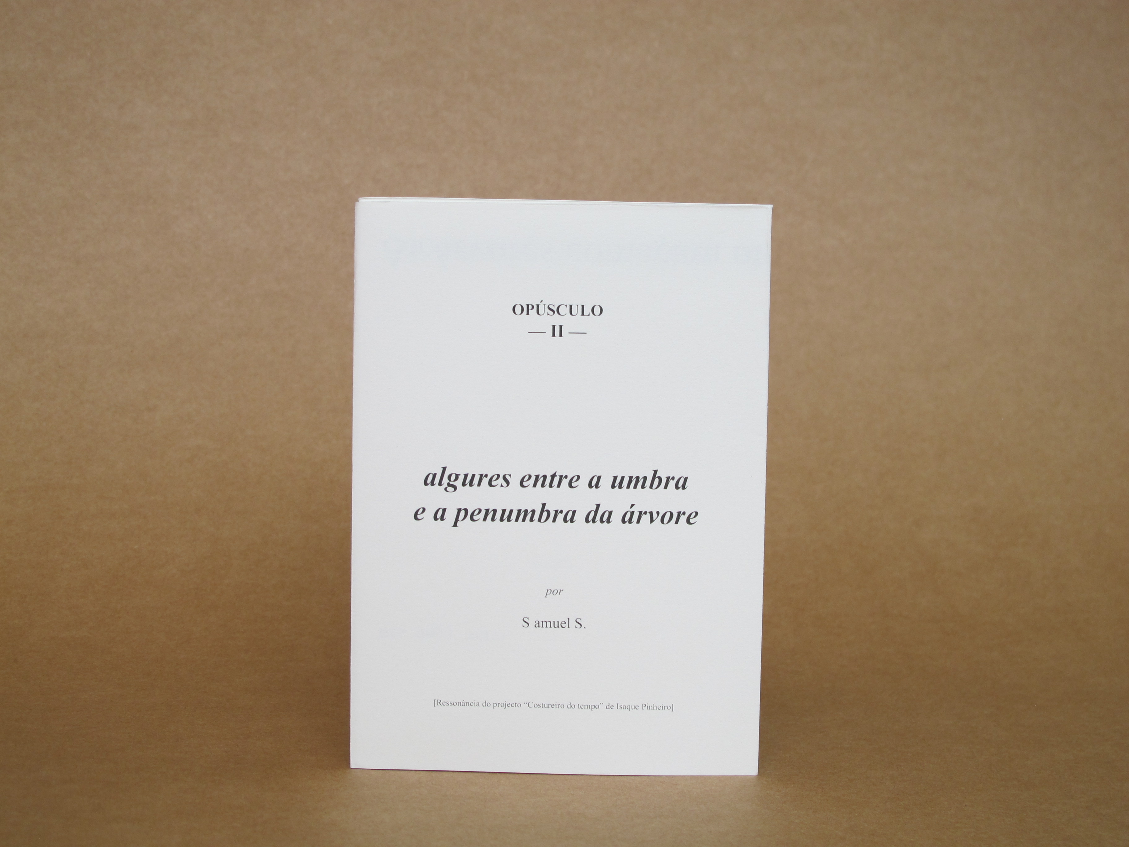 Algures entre a umbra e a penumbra da árvore – Opúsculo II 2014 Opúsculo II – Edição ilimitada | Ressonância do projecto “Costureiro do tempo” de Isaque Pinheiro | VI, 2014